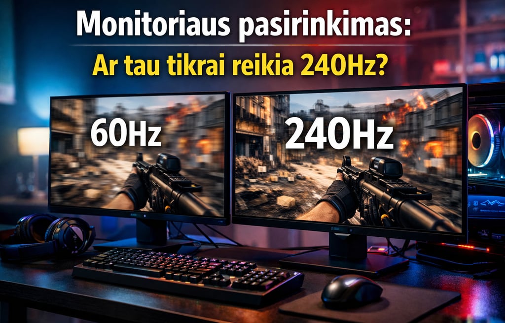 Žaidimų pasaulyje skaičiai dažnai tampa pagrindiniu matuokliu: daugiau kadrų per sekundę (FPS), daugiau megapikselių, didesnis hercų (Hz) skaičius. Tačiau, kai ateina laikas atsinaujinti monitorių, iškyla esminis klausimas: ar investicija į 240Hz monitorių yra pastebimas šuolis, ar tiesiog marketinginis triukas?