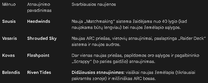 Jau kitą savaitę (sausio pabaigoje): Startuoja naujas projektas. Reikės rinkti specifines medžiagas mainais į išskirtinius apdovanojimus, o žemėlapiuose pasirodys nauji oro sąlygų efektai. Lietuvoje šio atnaujinimo tikimės sulaukti sausio 27–28 d. vakarą.
